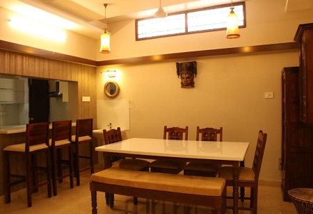 You’ll see echoes of Indian heritage in the puja space, the carved swing, and the deep-set seating, yet nothing feels overly “themed” or stiff.